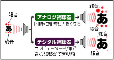 最近では、補聴器にもデジタル化が進み現在製造されているほとんどがデジタル補聴器です。 今後はもっとデジタル補聴器が多くなって行くと思います。しかし、アナログタイプも全く無くなるまでにはかなり時間がかかると 思います。デジタル補聴器は、価格が高くプロの手によってきめ細かい調整が必要になります。 また調整フィッティングしないとデジタルを使用している意味がないと思います。そして、それを出来るのがデジタルと言うことです。 また、アナログ補聴器の存在意味もあると思います。軽度難聴には、アナログタイプも必要になります。低価格 とあまり細かいフィッティングをしなくてもいいと言う事とアナログの音が好きな方もいらっしゃいます。