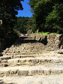 この日は安土まで足を延ばし安土城跡に登ってみました。長い石段が続きます。