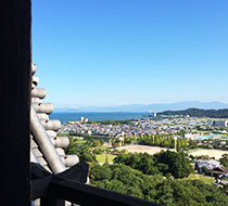 安土の町の先に琵琶湖が見えています。