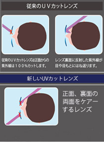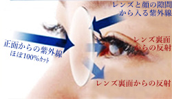 UVカットのめがねやサングラスで、UVケアしていても最近では、めがねやサングラスの隙間や、後ろからの光がレンズに 反射して、目に直接入ってくるのが問題だと言われています。