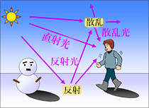 太陽光線は、直射日光の他にも散乱光・反射光があります直射光を防いでも反射光がいろんな角度から私たちに当っています。