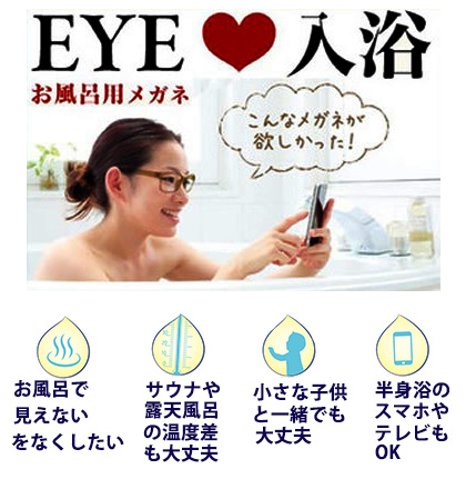 お風呂メガネ「EYE・ラブ・入浴」なら、メガネをかけたまま入浴でき近親の強い人におすすめです。