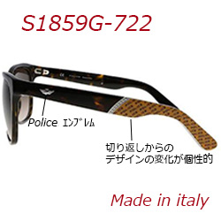 テンプルサイドにメタルデコレーションやエンブレムを配したデザインです。