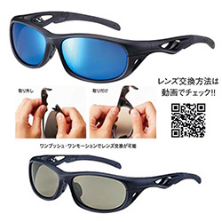 スペアーレンスも簡単ワンタッチで交換できます晴の日曇りひと使い分けがひとつのサングラスで可能です