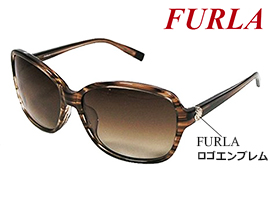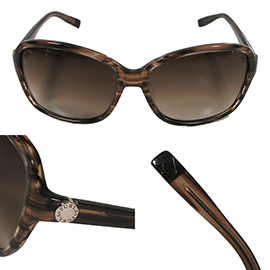 大きめブラウンセルフレーム テンプルにブランドエンブレム ブラウングラデーションレンズを合わせたお洒落なサングラスです。