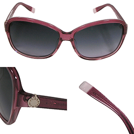 大きめクリアピンクグラデーションセルフレーム テンプルにブランドエンブレム グレーピンクグラデーションレンズを合わせたお洒落なサングラスです。